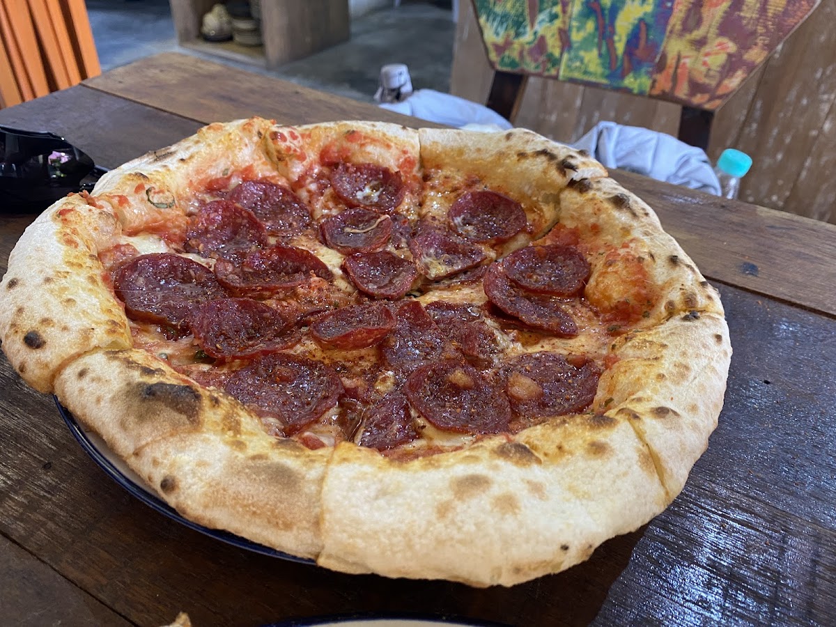 The fire wood pizza oven caught my eye, so I stopped by to try their pizza. It was delicious—the crust was thin, crispy, and had a great texture. I found the beef salami a bit salty, but I’ll definitely be back to try other flavors. It gets very busy during peak hours, so you’ll need some patience, but the service is excellent. Overall, a great dining experience