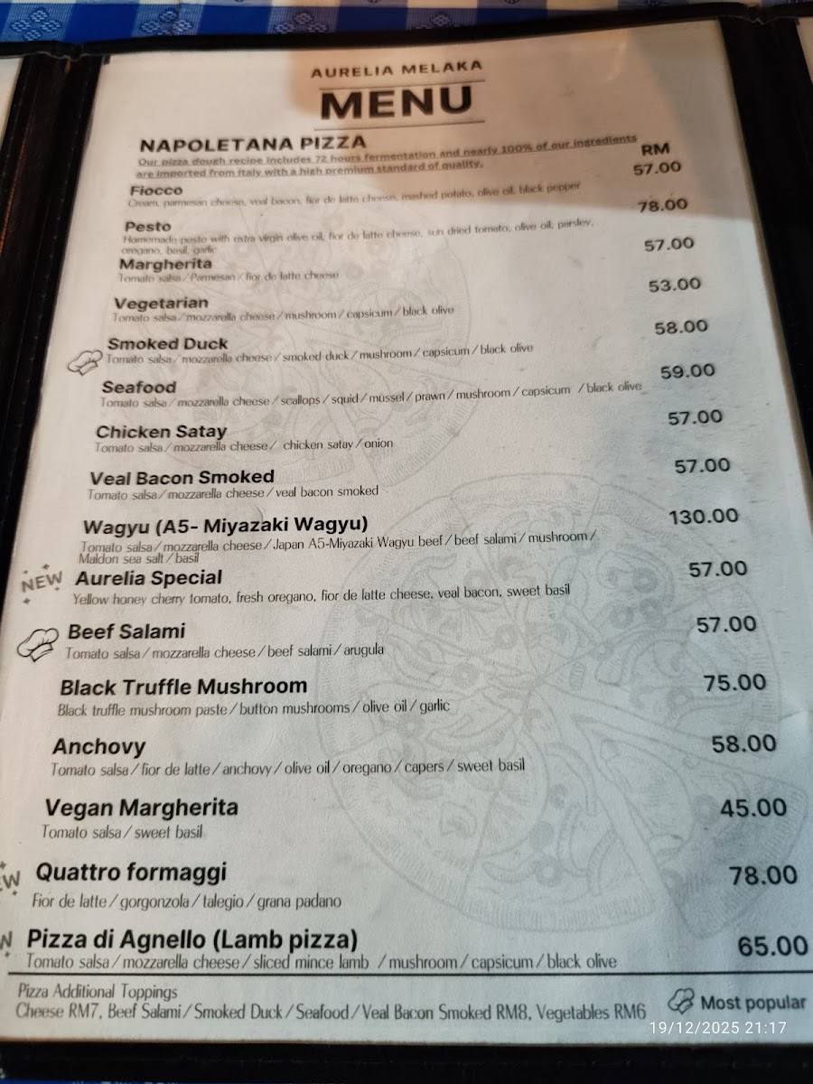 Aurelia Cafe - Pizza Melaka Menu